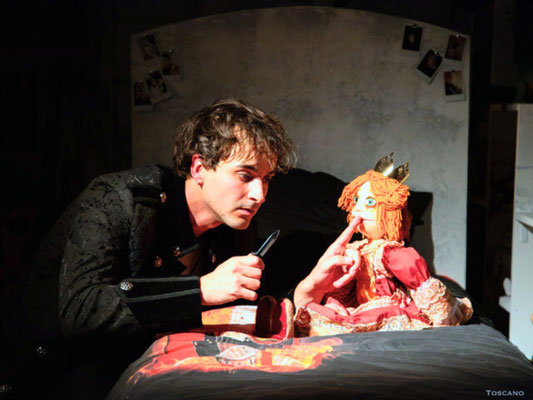 Encore sous le choc d’avoir perdu son père deux mois plus tôt, Hamm, âgé de 19 ans, ne peut supporter l’idée que sa mère ose déjà lui présenter l’homme avec lequel elle souhaite se remarier. Barricadé dans cette chambre, dont il ne veut plus sortir, il lui faut exorciser son chagrin en agissant. Or, par définition, celui qui agit c’est bel et bien l’acteur. C’est ainsi qu’utilisant tout ce qui l’entoure : guitare, punching-ball, marionnettes héritées de son père, et transformant le mobilier de sa chambre en une inventive scénographie, Hamm va jouer tous les personnages de l’intrigue, dont il se sent lui aussi victime. Son univers devient un royaume où fiction et réalité s’entrechoquent : il est Hamlet et le théâtre devient moyen de résilience pour sa jeunesse en manque de repères.